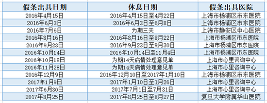 马某多次向华安基金递交病假条,请假日期及出具医院如下: