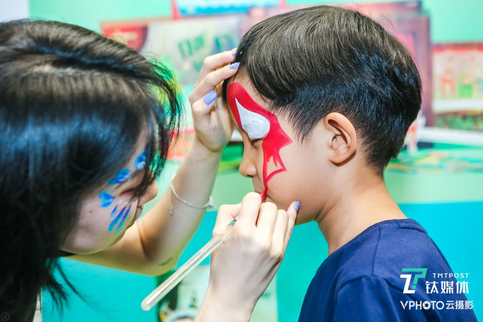 丰富多彩的展区自然少不了多彩的形象,小脸上的油彩看似简单,小朋友一旦奔跑,彩绘都变成了会动的精灵,陪伴孩子们欢笑。