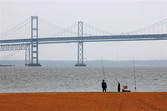 切萨皮克湾大桥(本地人称为“海湾大桥”)位于马里兰州切萨皮克湾,是连接该州东海岸与西部发达城市间主要交通要道50号公路上的一座大桥。切萨皮克湾将马里兰分成东、西两部分,东部地区面临大西洋,三面环水,只在东北角与特拉华州及宾夕法尼亚州陆地相连,人口密度低,因此较少大城市,经济发展以农业、旅游、度假为主。