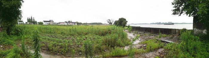 7月13日,站在黄浦江上游的松浦大桥下,江北岸一片2万平方米的空地杂草丛生。