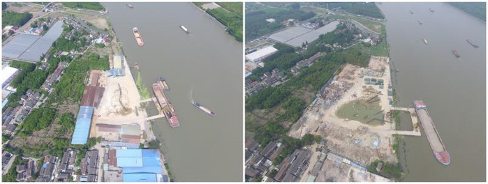 上海大江饲料有限公司清拆前后对比(2017年)    松江区供图