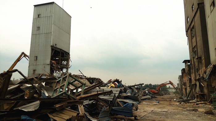 两年前,这里曾是上海大江饲料有限公司的厂区,在两台挖掘机的“围剿”下,该公司的标志性建筑——约6层楼高的饲料车间被迅速拆除,象征着这家“30多岁”饲料厂的谢幕。