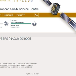 根据欧洲全球导航卫星系统局11日发布的公告显示,“伽利略”卫星导航系统的服务中断从UTC时间当天1点开始。不过,根据“全球连续监测评估中心”(iGMAS)11日数据显示,从UTC时间7月10日14-15时以及17时起,“伽利略”已经出现异常。
