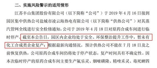 辉丰股份(维权)(002496)与丰山集团在同一园区,也因为供热公司安全检修停止供热,原药合成车间临时停产。