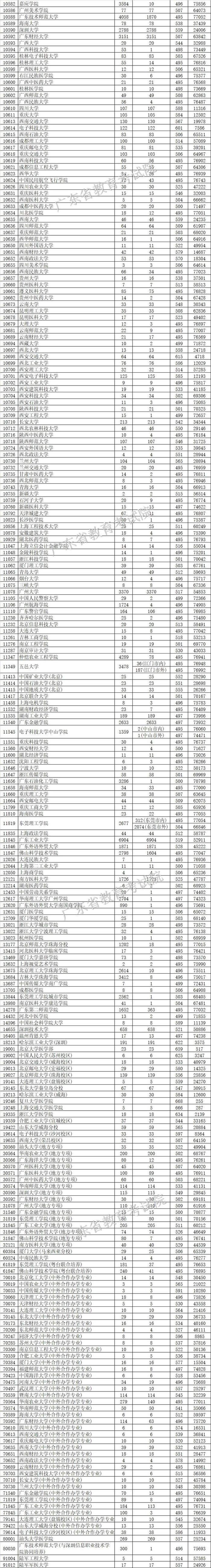 今年理科前四与文科排序一致,为中大(595分)、华工(592分)、暨大(563分)、深大(559分),紧跟其后的是汕大医学院(557分)、华师(554分)、汕大(531分)、广外(528分)、南方医科大学(525分),排序与去年一致。今年首次独立招生的深圳技术大学以521分闯入前十。
