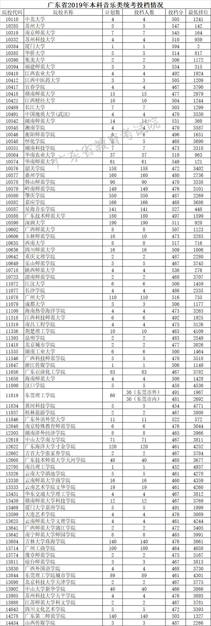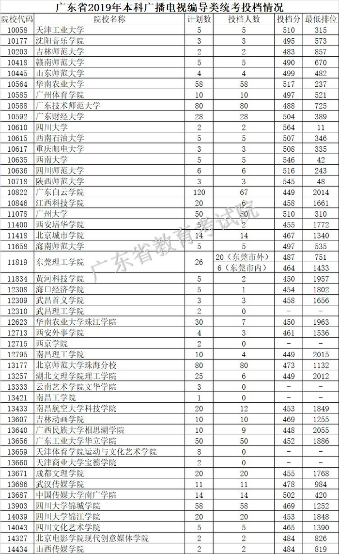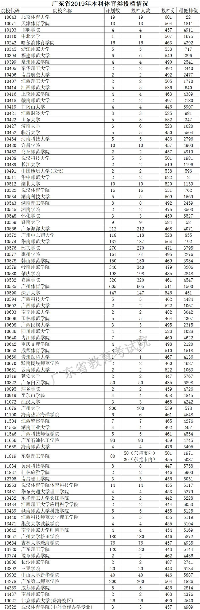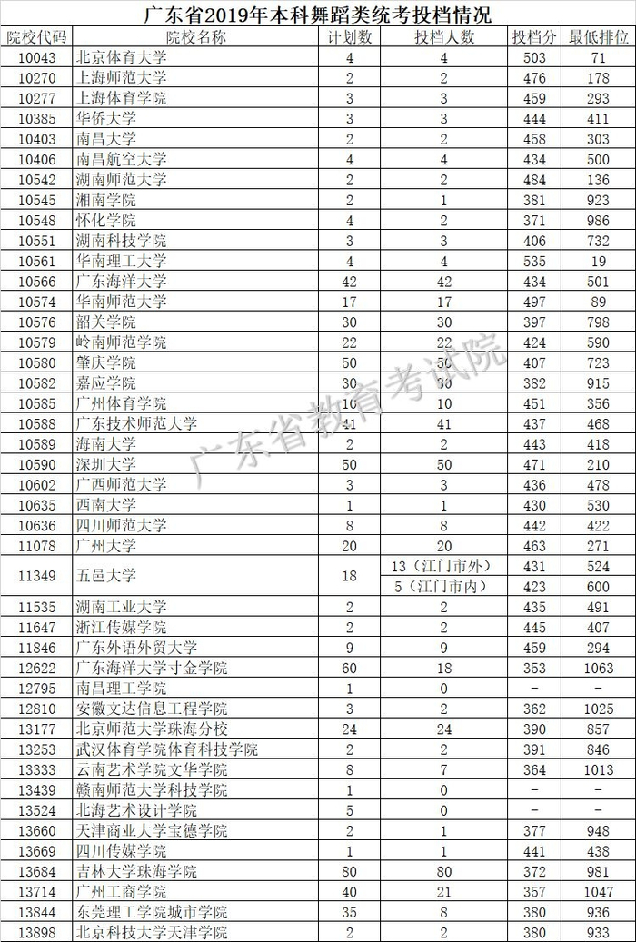 同日,广东省艺术类统考、体育类本科院校也正式开始投档,共投出考生22338人。从投档情况来看,音乐类本科院校满档,美术类和体育类本科院校基本满档;首次实行省统考的舞蹈类和广播电视编导类公办院校也基本满档。