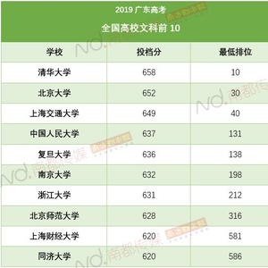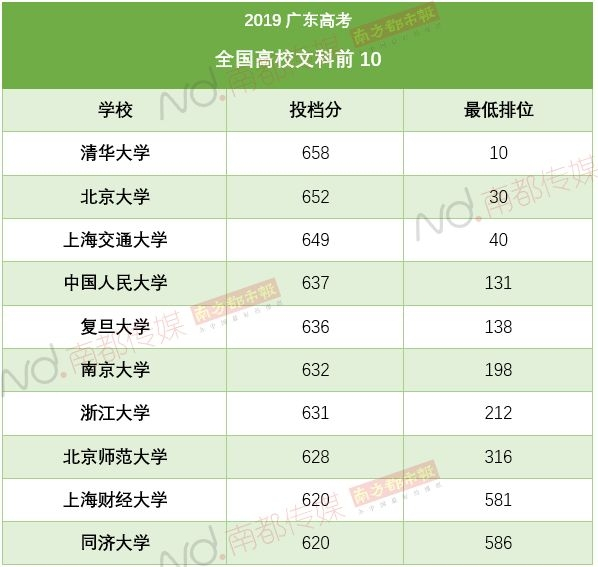 全国高校文科投档线清华(658分)、北大(652分)、上海交大(649分)稳居前三,与去年排序一致。人大(637 分)今年以1分优势,反超复旦(636分),位列全国第四。