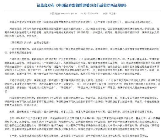 2015年证监会制定《行政处罚听证规则》,对申请的条件作了明确规定。