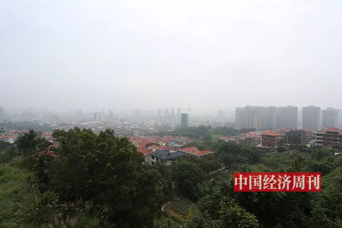 黄志贤旗下房地产项目:近处别墅为“凤凰别墅山庄”,右侧远处楼群为“名邦豪苑”,正中为一在建高层项目。《中国经济周刊》记者 胡巍 | 摄