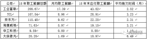 2017年和2018年年末,大族激光账面上的应付职工薪酬余额分别高达11亿、10.97亿,而大族激光同期的职工薪酬总额也不过是20亿出头,也就是说,大族激光拖欠员工工资的时间长达半年之久。