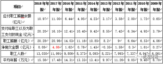 尚未支付的这11亿滚动到18年,而18年实际支付薪酬20.2亿,刨去这11亿,实际支付当期薪酬9.2亿,但当期薪酬高达20.28亿,于是乎,又有近11亿滚动到19年。