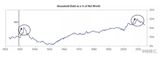 有意思的是,货币政策在这个时候是帮助推动泡沫的。比如80年代的日本,以及1920和2000年的全球。这时候央行是不愿意收紧货币政策的。而且大部分央行是盯着通胀和增长的,不是盯着债务增长的。