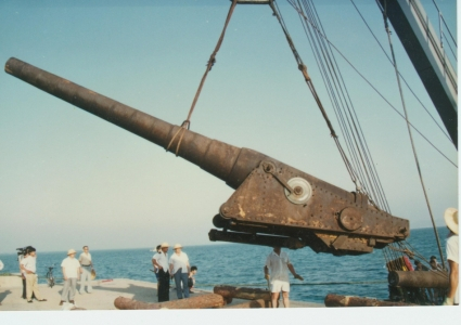 两次打捞花光了300万经费,还欠着烟台救捞局近200万元。从1986年一直到1992年,这两门大炮就一直放在烟台救捞局码头上,“我每去一次心都很痛,不是东西少了,就是生锈了,但是没钱,没有办法。”戚俊杰说。