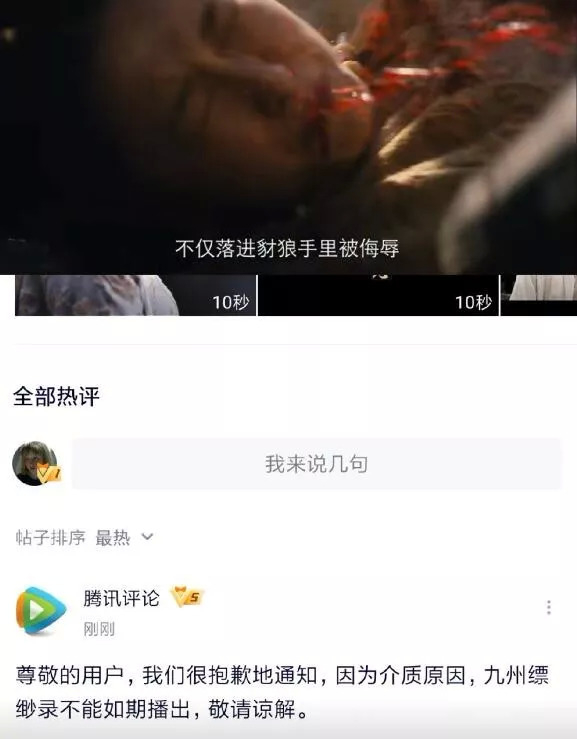 腾讯视频评论说,“因为介质原因,九州缥缈录不能如期播出”。介质问题,成为了一大未解之谜。