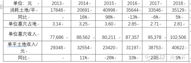 数据显示,1,公司自2016年就开始控制土地的消耗,因为土地对公司来说是非常宝贵的资产,即使政府不限制面积,公司也会设法提升单位土地的价值。公司单个墓穴的占地面积自2016年开始下降。
