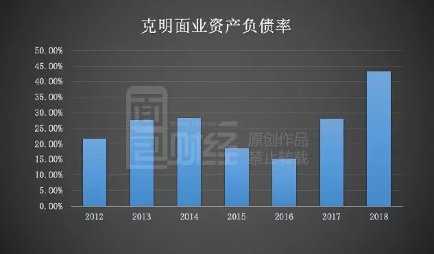 翻查2018年年报,克明面业账上的短期借款为7.9亿、应付债券为3.91亿。资产负债率则上升至43.40%,创下自2012年上市以来的新高。