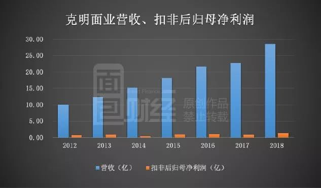 最新的2019年一季报数据显示,克明面业的营收仍然保持了较快的增长,当季实现营收7.85亿,同比增长17.52%。然而,公司一季度的扣非净利润为5,136万,同比减少了7.47%。对比历史数据发现,上一次一季度扣非净利润同比下滑还得追溯到2015年。