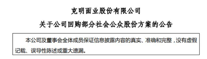 原标题:克明面业:回购最高限价低于股价,真回购还是假回购?