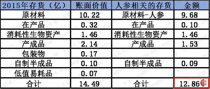 2013年-2015年人参及相关产品销售收入合计不超过1.4亿,三年采购总额减去销售总额还有14.26亿,远比2015年账上人参存货12.86亿还多。