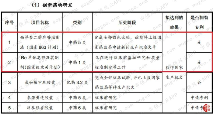 益盛药业IPO时曾重点强调研发的新产品,有西洋参二醇皂苷注射液和Re 单体皂苷及其制剂(国家级攻关项目)。