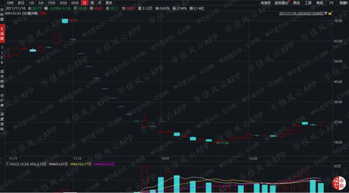 2011年底,重庆啤酒连吃9个跌停板,股价从最高的72.74元/股跌到17.64元/股,市值缩水到只剩四分之一。