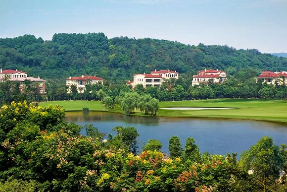 钟山国际高尔夫坐落于南京紫金山东麓,总占地约3671亩,其中球场占地约2400亩,别墅及配套设施占地约1200亩,由27洞国际级赛事标准球场、约9000平方米高级会所、超五星级酒店“索菲特钟山高尔夫酒店”和高尔夫景观独栋别墅组成。
