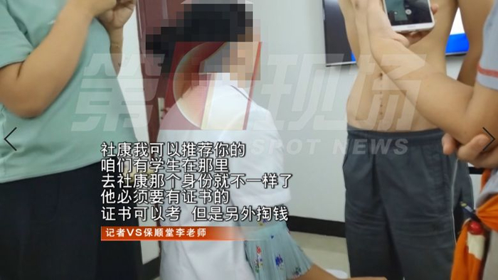 这位上课老师还表示,学完3天的速成班,可以在保顺堂办理一个4980元的针灸师证书,还可以考虑推荐学员去社康当针灸师,并表示此前已经介绍了学员到宝安固戍社康当针灸师。