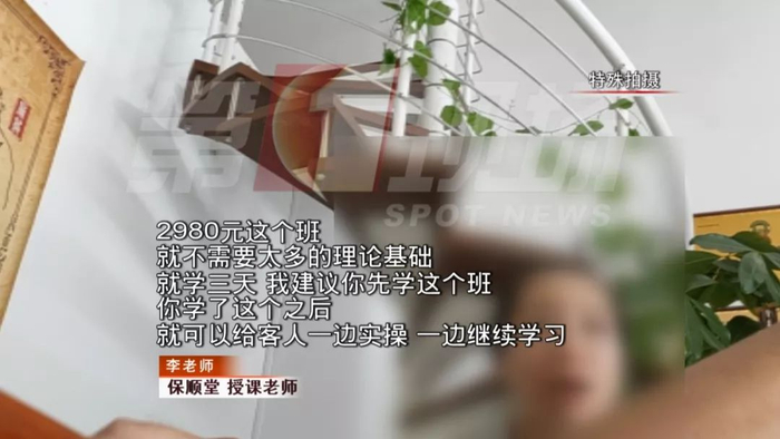 这家位于宝安坪洲的保顺堂中医培训机构,开设各类速成班,包括解剖学、诊断学、推拿等,其中就有针灸速成班,学习时间最短的两天,最长的四天,三天是他们主推的速成班,特惠价2980元。