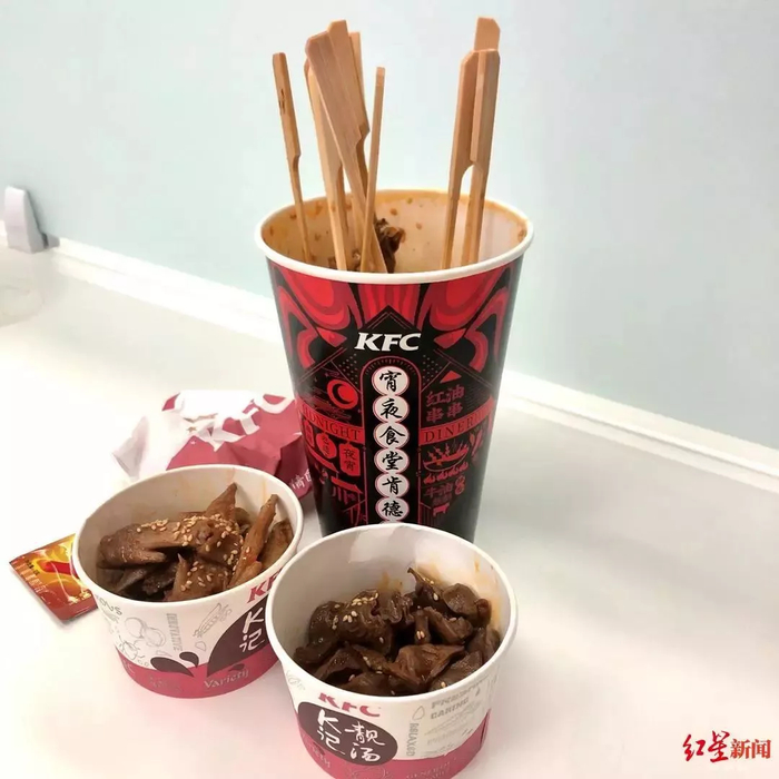 红星新闻记者随机抽取的10位测评人员均表示,KFC“串串&卤味”系列产品食材质量优等、包装精美、配送快捷。味道是大众化的川味,但对四川人来说口味偏淡,缺乏辨识度。