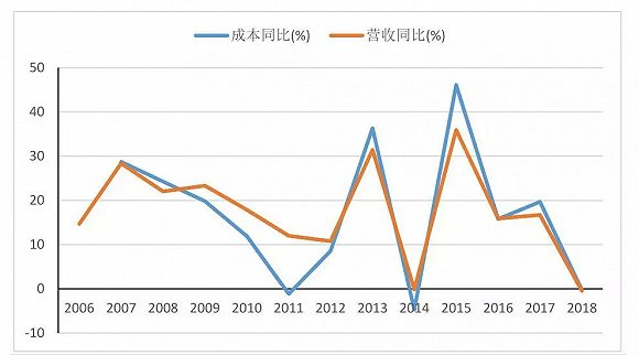 价格的不断上涨并没有带来公司营收和净利润的同比例上升,同期的公司营业收入从2009年的20.79元上升到2018年的73.38亿元,仅上涨3.53倍,同期净利润从2010年的3.92亿元上升到2018年的20.85亿元,上涨5.35倍。