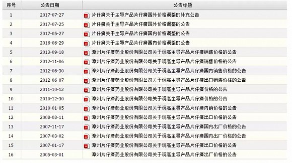 自2010年以来,东阿阿胶共发布过14次针对产品提价的公告,是一个名副其实的“提价王”。其中,东阿阿胶的产品阿胶块在2010年提价三次,上调幅度分别为20%、5%、10%;2011年一次性提价60%;2012年上调阿胶出厂价10%;2013年上调阿胶出厂价 25%;2014年三次上调,提价幅度分别为19%、53%;2015年两次提价,桃花姬阿胶糕出厂价25%,东阿阿胶、复方阿胶浆、桃花姬阿胶糕出厂价上调15%;2016年11月,东阿阿胶、复方阿胶浆和桃花姬阿胶糕出厂价分别上调14%、28%、25%;2017年11月,东阿阿胶、复方阿胶浆出厂价分别上调10%、5%;2018年12月,东阿阿胶出厂价上调 6%。