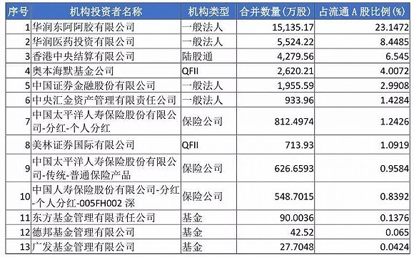 根据Wind统计,2018年年底,重仓东阿阿胶的基金共有10只,合计重仓653.6万股。其中最大的是银华富裕主题,持股数量558万股,持股市值达到2.2亿元。