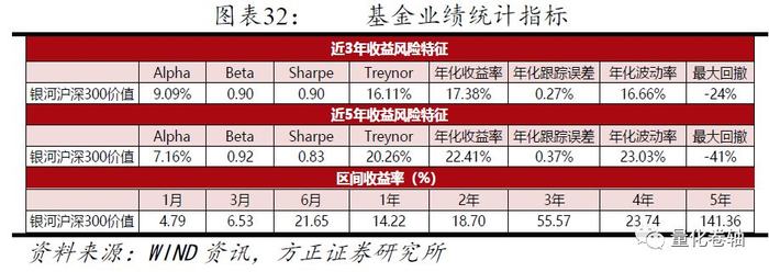 从业绩表现看,两者产品走势都严格贴合基准指数,我们选取银河沪深300价值作为代表,统计了基金一些关键的绩效指标,如图表32所示。近3年来,基金相对沪深300年化Alpha为9%,Beta为0.9,Sharpe0.9,年化波动16%,最大回撤24%,3年累计收益率55%,5年累计收益141%。