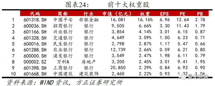 成分股中的仅中国平安就占到了16%,其余包括7家银行、1家地产和一家建筑装饰公司,前十大权重股占到了股票总持仓的45%,股票持仓集中度比较高。