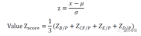 各变量采用极值调整后的值进行计算,价值评分为四个价值变量 Z 值的平均: