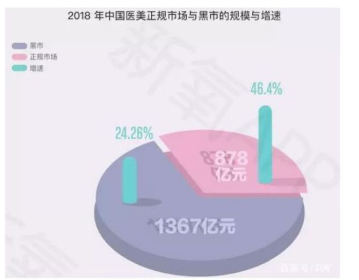 据新氧报告显示,中国医美黑市规模或达1367亿元,同比增速24.26%,共有超过10万家非法执业的工作室、美容院等机构。