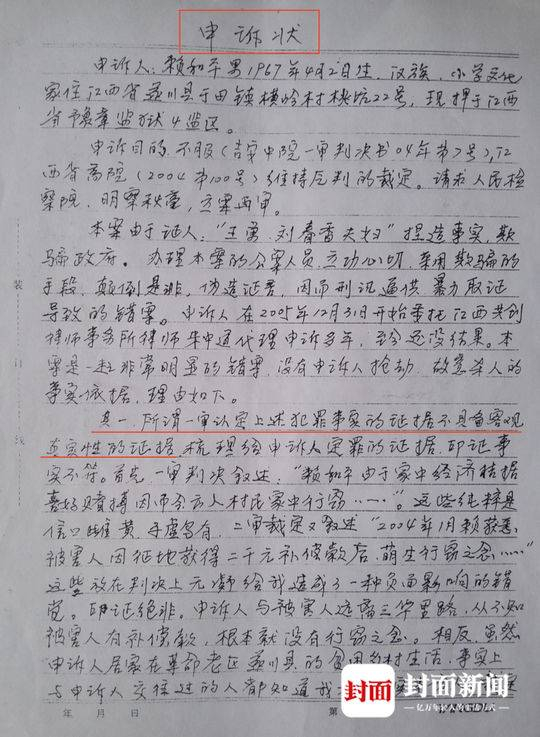 张进华律师告诉封面新闻记者,去年8月,他已向江西高院提交最新的申诉材料,目前仍未收到回应。