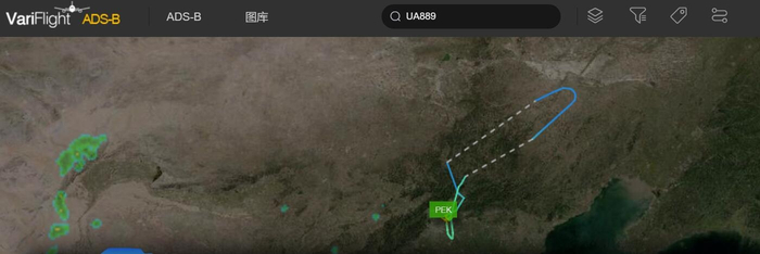 图:美联航UA889航班轨迹图 图片来源:飞常准