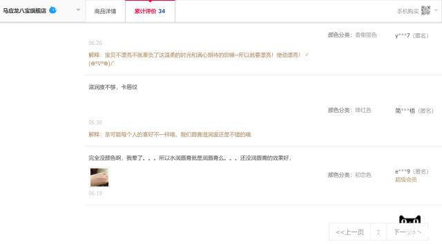 不管怎样,在争议中的马应龙已经省去了一大笔广告费,尽管销量不高,尽管马应龙八宝天猫旗舰店的34个评论中已经有人吐槽“滋润度不够,卡唇纹”、“完全没颜色啊,我晕了...所以水润唇膏就是润唇膏么...还没润唇膏的效果好”,但马应龙八宝口红很多人已经知道了。