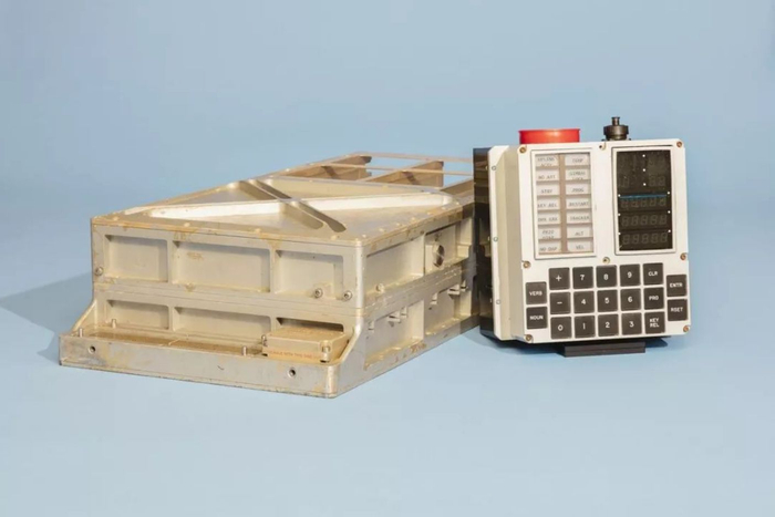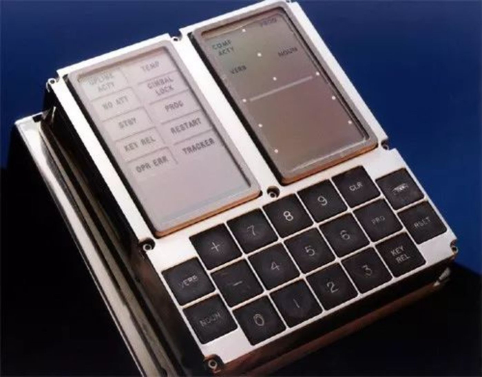阿波罗制导计算机由MIT仪器实验室开发,它的外表就像是一个由两部分组成的黄铜手提箱,装在航天器的命令模块(CM)和月球模块(LM)中,总长61×32×17 厘米、重 14 公斤。宇航员使用数字显示器和称为 DSKY 的键盘与 AGC 通信。