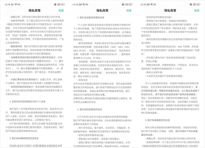 OPPO两项服务的隐私条款