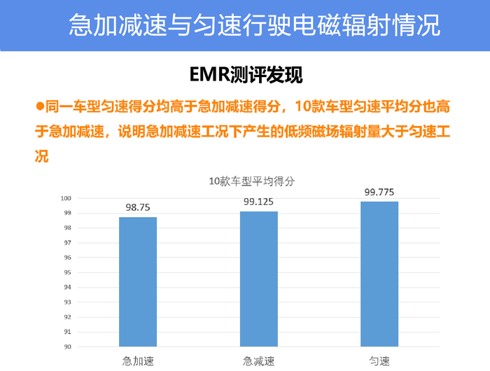 从本次测评结果来看,新增的车辆电磁辐射(EMR)测评板块总体成绩良好。
