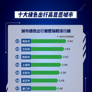 南京“绿色出行意愿指数”最高,北京“公交&地铁出行意愿指数”最高