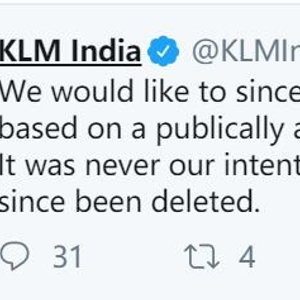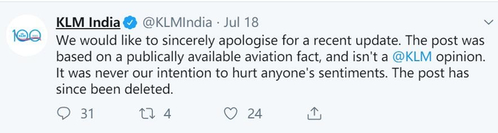 KLM为发布讨论飞机失事中幸存机会的推文而道歉