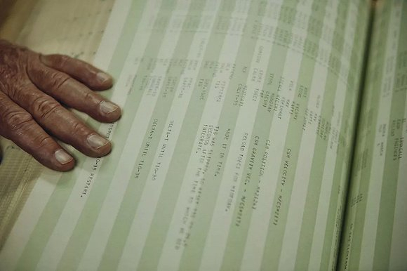 一份18英寸厚的打印文件显示了控制阿波罗登月舱降落到月球的部分计算机代码。图:《华尔街日报》TONY LUONG