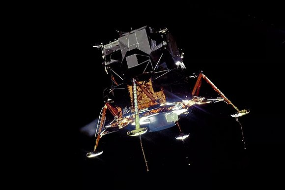 阿波罗11号登月舱“鹰号”在分离后,开始在计算机引导下降落到月球表面 来源:NASA