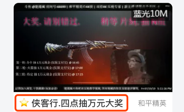 这种竞猜最初的设想也许是增加平台活跃度及产品黏性,好让观众在观看游戏直播时能够获得参与感(类似球迷押注后对球赛更有投入感)。然而今天的斗鱼主播已经将线上竞猜当作招揽观众的重要手段,不仅在直播中刺激观众进行竞猜,甚至将直播标题改为抽奖奖品以引人注目。