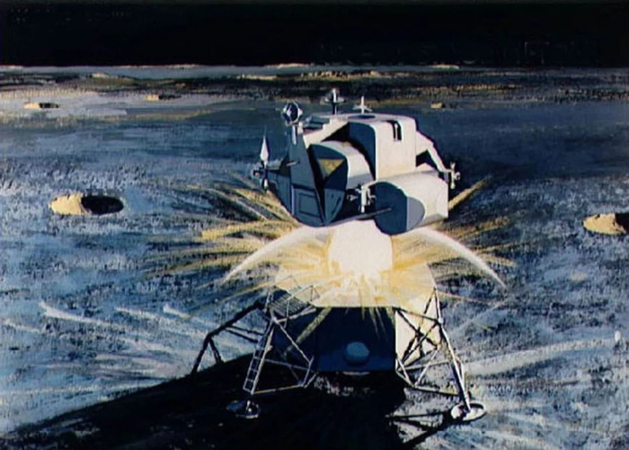 突然间,数百万电视观众听到无线电中传来了类似火车头或电锯发出的混合声音,阿姆斯特朗更换了一个频道继续对地面控制中心说:“我想知道这儿到底发生了什么。”地面控制中心问:“怎么了?那儿有什么事不对头吗?”航天员说:“阁下,那儿有许多大东西!老天,它们真的非常大!它们正坐在大陨坑的另一头,它们正在月球上看着我们到来!”