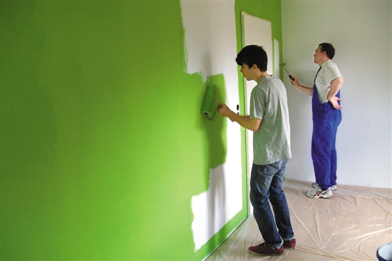 本文作者的朋友拉尔夫与儿子在刷自家房子的墙