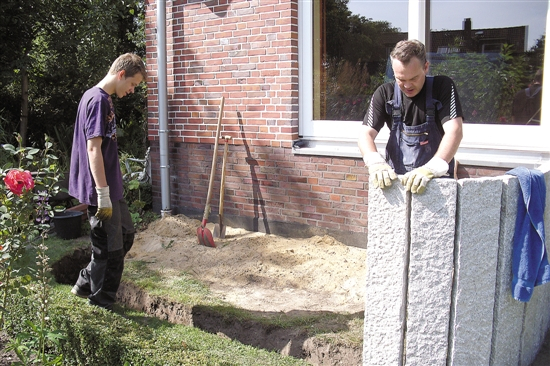 本文作者的朋友拉尔夫与儿子一起砌自家的花园